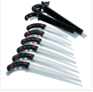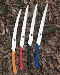 All saws mentioned are fixed saws that come in a protective case that can be attached to the body if wanted. They have the special Gom rubber handles with gives exceptional comfort when cutting. The Gomtaro, Natanoko and Genki saws have NON – set teeth. This means that they give a very smooth easy cut. The Masaru has a SET tooth. This means that the cutting is very fast and aggressive. You can NOT sharpen the Gomtaro or the Natanoko, but they will stay sharp due to a special treatment on the tips of the teeth for an extremely long time. The Masaru and Genki CAN be sharpened. These are ALL PULL saws, do not put excessive pressure on the forward stroke as this can cause the blade to be damaged. All pressure should be as you are drawing the blade toward yourself. These saws are designed to do the work for you, so only a very small amount of pressure is required as you PULL the blade. When you push it you are simply clearing the wood out of the teeth. Blades are all hollow ground which will reduce the chance a getting the blade stuck while cutting. There is a protective coating on all 4 blades, but we still strongly recommend that all saw blades are cleaned after use with the EASy cleaning spray and then sprayed with a Lanolin lubricant.
