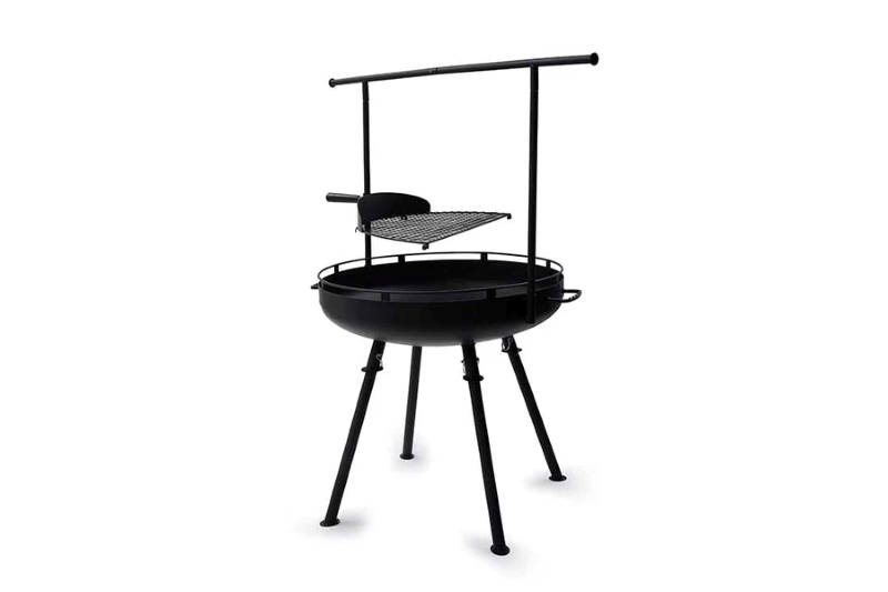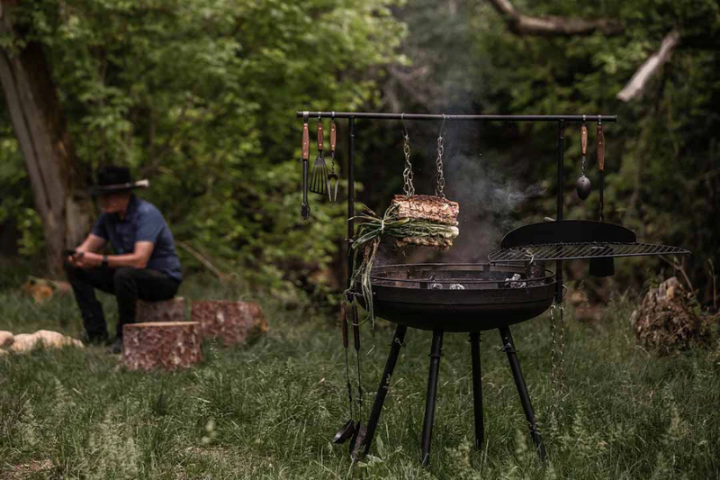 The Barebones cowboy fire pit grill 30″ with adjustable legs will elevate your outdoor cooking experience — a heavy-duty, multipurpose fire pit and grill built for adventure and everyday use. Crafted from robust solid steel with input from open-fire chef partners, this grill system easily transforms from a classic fire pit to a fully functional open-fire grilling and cooking station.
